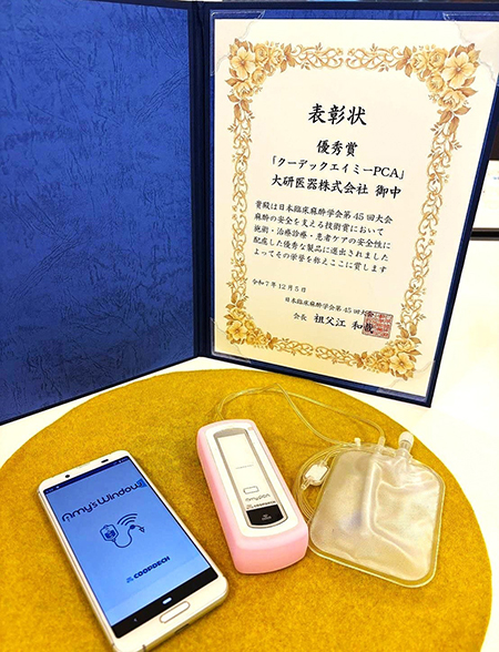 医療機械器具の製造販売を手掛ける大研医器は11日、同社の患者管理無痛法用輸液ポンプ「クーデックエイミーPCA」が、日本臨床麻酔学会第45回大会「麻酔の安全を支える技術賞」の優秀賞を受賞したと発表した。