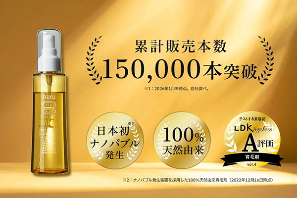 kurokamiスカルプ(haruシャンプー(発売開始から12年のロングセラーとなっている、リンス不要のオールインワンシャンプー))でお馴染みの、ヘッドビューティブランド「haru」を展開するnijito(本社:東京都港区、EC事業部:福岡市中央区)は、2023年9月に販売を開始した薬用育毛剤「haru スカルプエッセンス100」が、累計販売本数15万本を突破したことを発表した(26年1月末時点 同社調べ)。