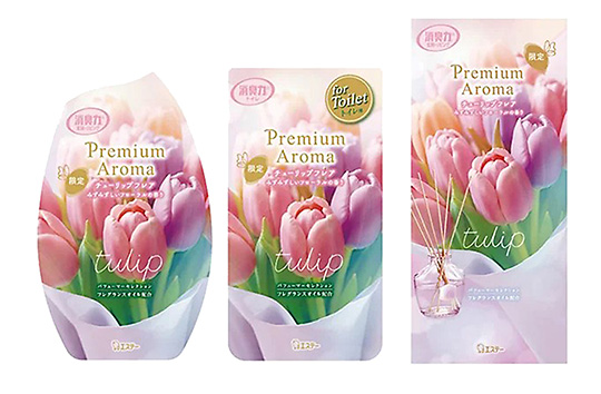 エステーは、「消臭力PremiumAroma(プレミアムアロマ)」シリーズから、花束を受け取ったような春のきらめく幸福感に包まれる「チューリップフレア」の香りを数量限定品として新発売し、チューリップフレアの香りの「同玄関・リビング用」「同トイレ用」「同玄関・リビング用Stick」(本体のみ)を全国のスーパー、ドラッグストア、ホームセンター、ネットショップなどで販売を開始した。