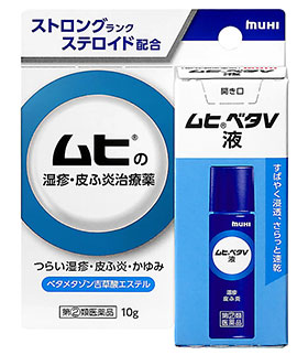 ムヒベタV液は、OTC医薬品においてストロングランクのステロイド外用剤として日本で初めてロールオン容器を採用した湿疹・皮膚炎治療薬。