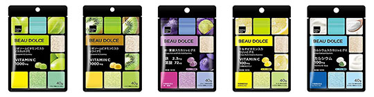 今回、新登場するのは、栄養素と食感にこだわったグミ全5種。2層ジュレが広がる「リポソームビタミンC入りグミ」は、シリーズ初となるビタミンCを効率良く吸収できる工法を採用。マスカット、キウイの2種の爽やかなフレーバーで、1粒で満足感のある贅沢な味わいに仕上げた。