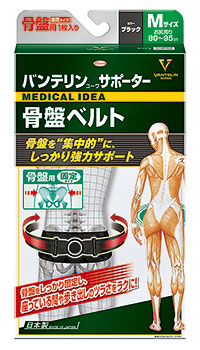 新製品は、腰下部にフィットするよう工夫を凝らした縦幅11cm細幅設計のベルト形状で、座った状態でも苦しくなりにくいなど、日常生活の動きを妨げることなく、骨盤の背面部をしっかり固定する。