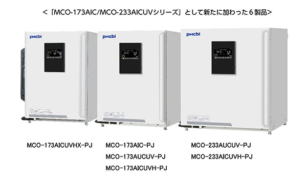 PHCライフサイエンス事業部 バイオメディカ事業グループ(PHCbi)は、製薬企業および研究施設・医療機関向けに昨年発売したCO2インキュベーター「MCO-233AICUVHX」に6モデルが加わり、製品ラインナップを拡充して新たに「MCO-173AIC/MCO-233AICUVシリーズ」を展開し、6月に販売を開始する予定にしている。新シリーズでは、操作性・利便性の向上をはじめとする基本性能をシリーズ全体で刷新すると共に、細胞培養環境のさらなる安定化を図るため、独自の加湿制御機能を搭載した「MCO-173AICUVHX-PJ」を「MCO-233AICUVHX」の小型モデルとしてラインアップに追加している。