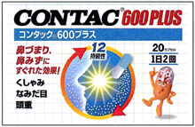 「コンタック600プラス」は、配合成分のダブル・ツインアクションによる優れた効果が特徴。塩酸プソイドエフェドリンと塩化リゾチームの2種類の有効成分によるダブルアクションで鼻づまりを緩和し、マレイン酸クロルフェニラミンとベラドンナ総アルカロイドの2種類の有効成分によるダブルアクションで鼻水を抑える。さらに無水カフェインが鼻炎に伴う頭重の症状を緩和する。
