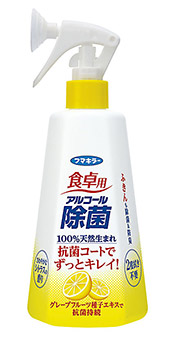 フマキラーは、アルコール除菌シリーズの新製品として、100%天然由来の成分を配合した「フマキラー食卓用アルコール除菌スプレー」の発売を開始した。